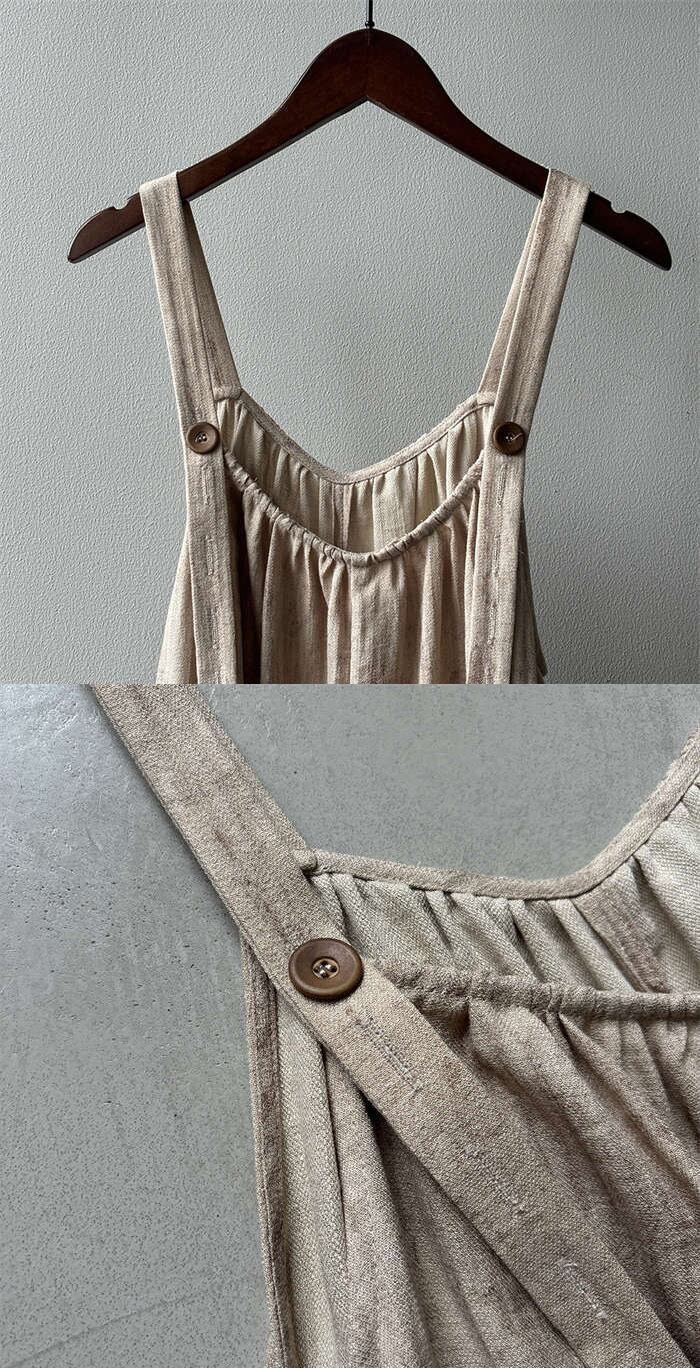 ・落ち感のある素材で、サラッと着心地のよいシンプルなノースリーブサロペットです。