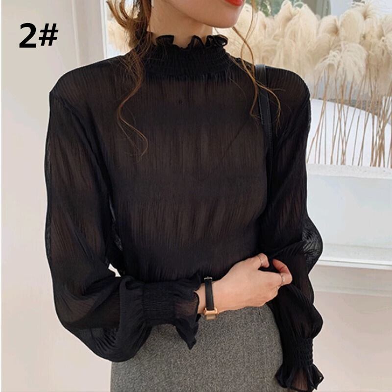 2025年春新作 ブラウス インナー トップス レディース ハイネック インナーシャツ レース 長袖ブラウス