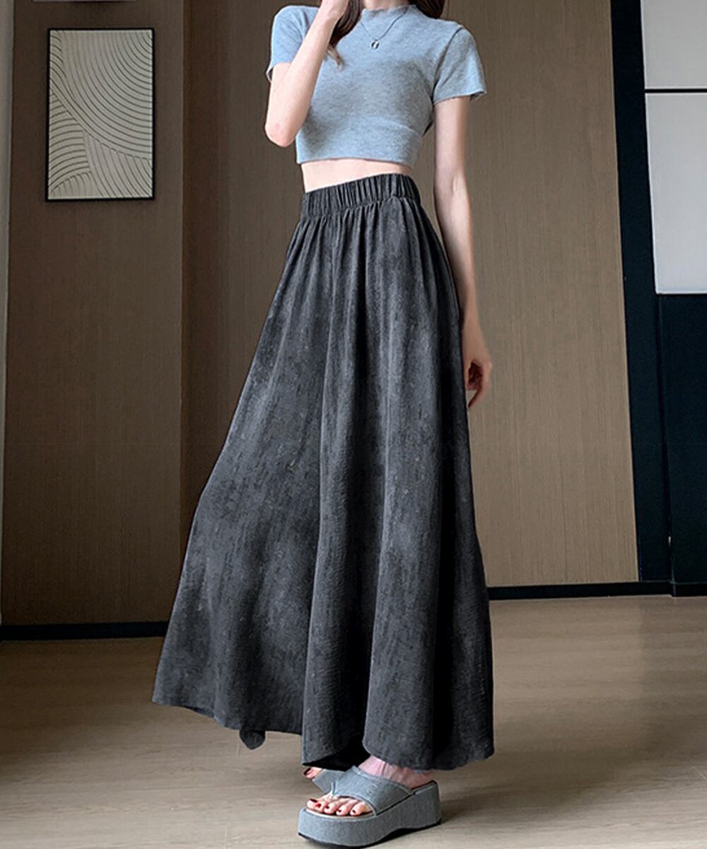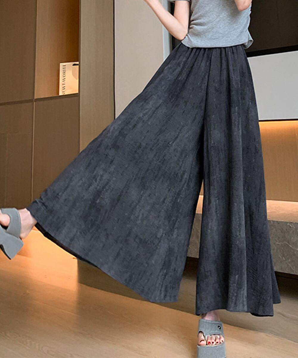レディース ハイウエスト ゆったり フレアパンツ ウエストゴム スカーチョ 涼しげパンツ ナチュラル カジュアルスカンツ