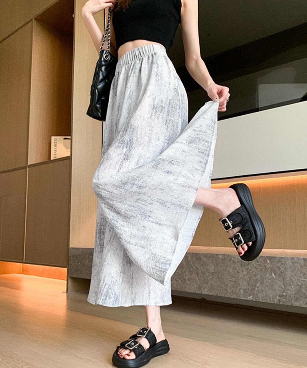 トレンド感あふれるタイダイ柄のワイドガウチョパンツ
