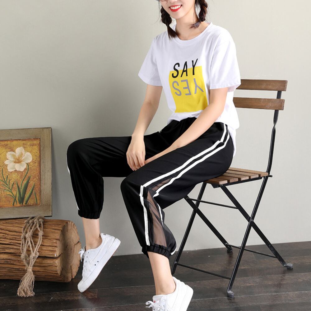 部屋着 薄手/スポーツウエア春夏/ラインパンツ九分丈