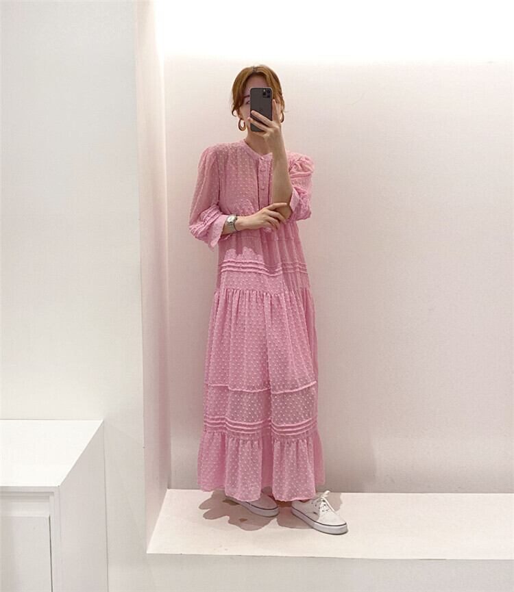 韓国ファッションロングスカート 立体感 半袖 ワンピース サスペンダー付