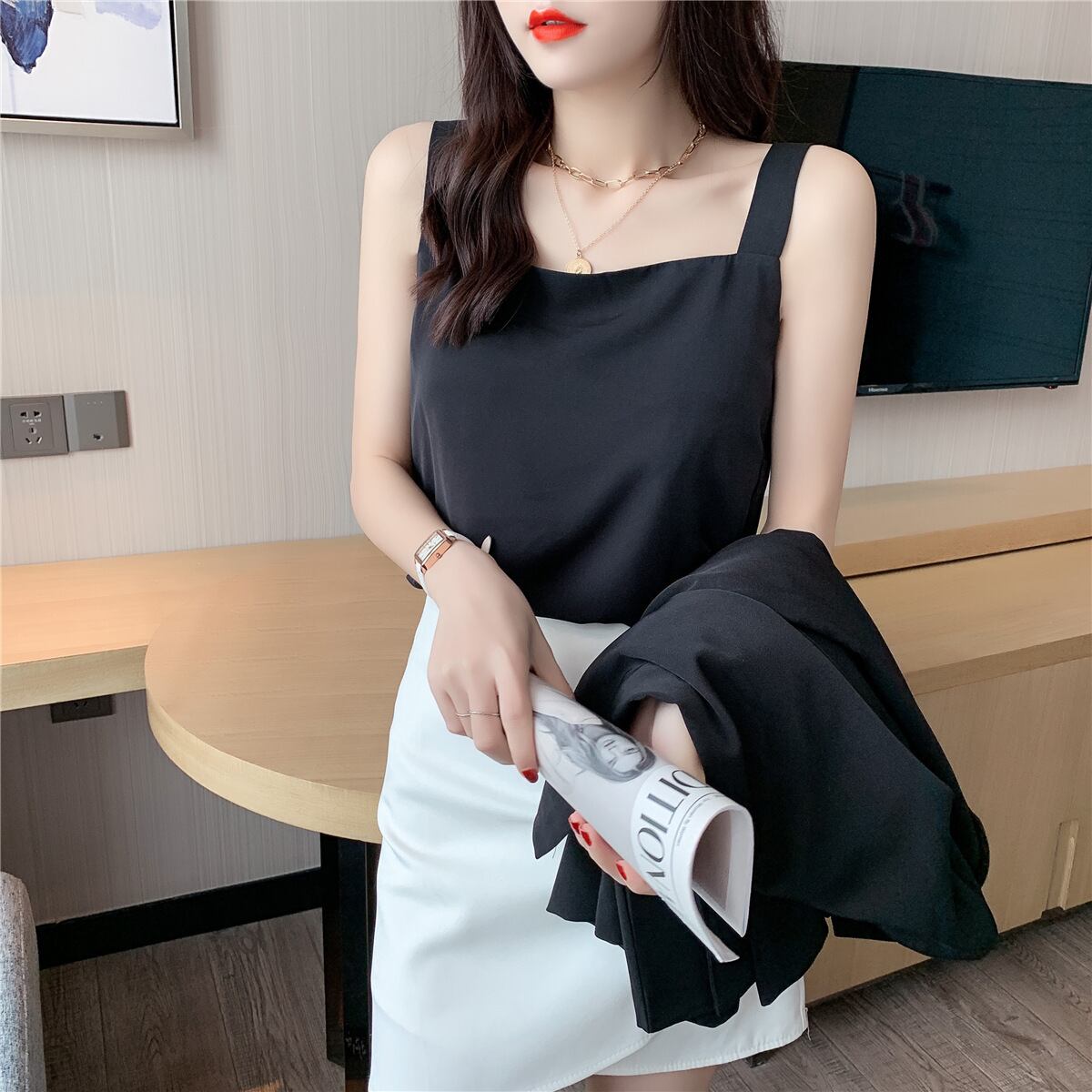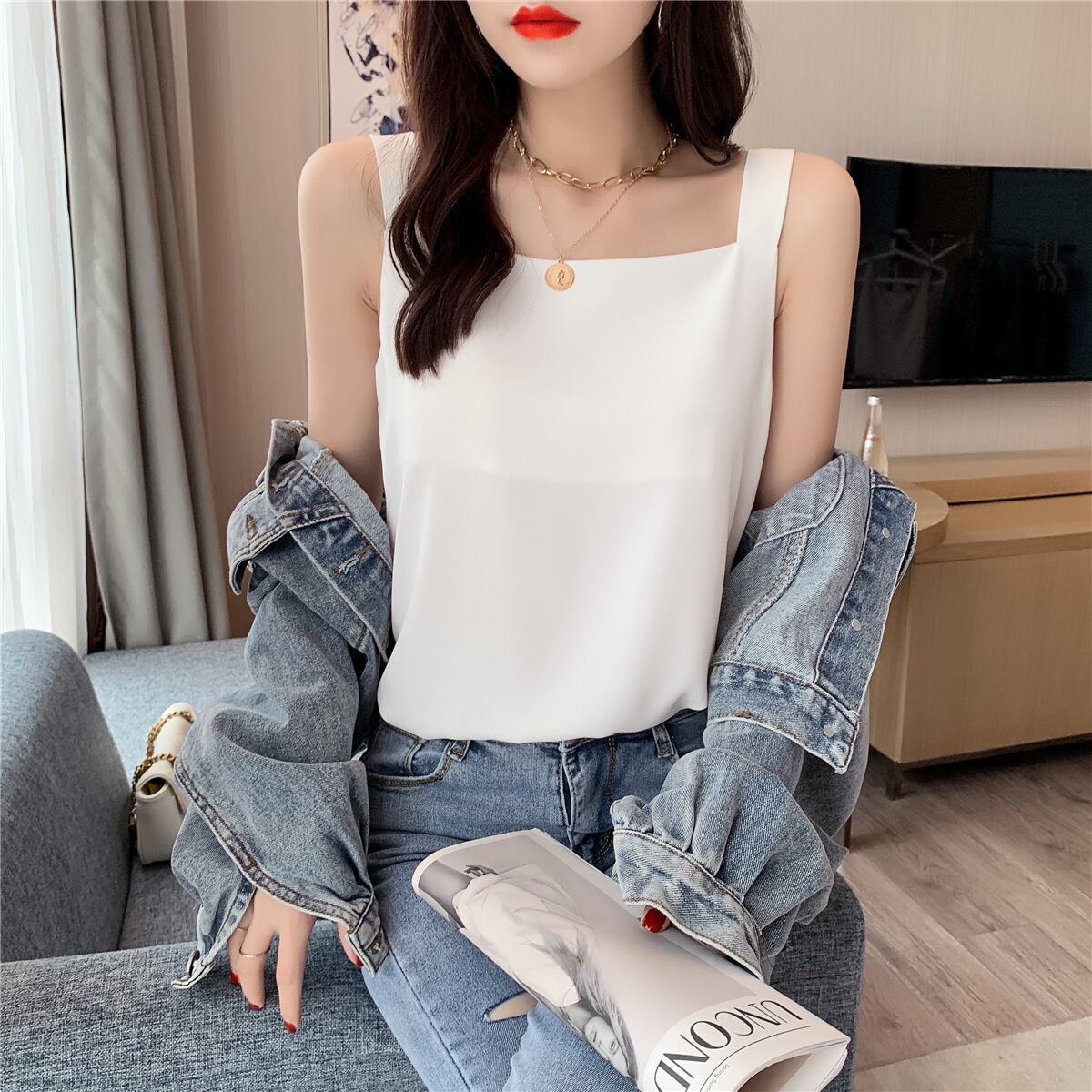 清潔感のあるシンプル シフォンキャミソール