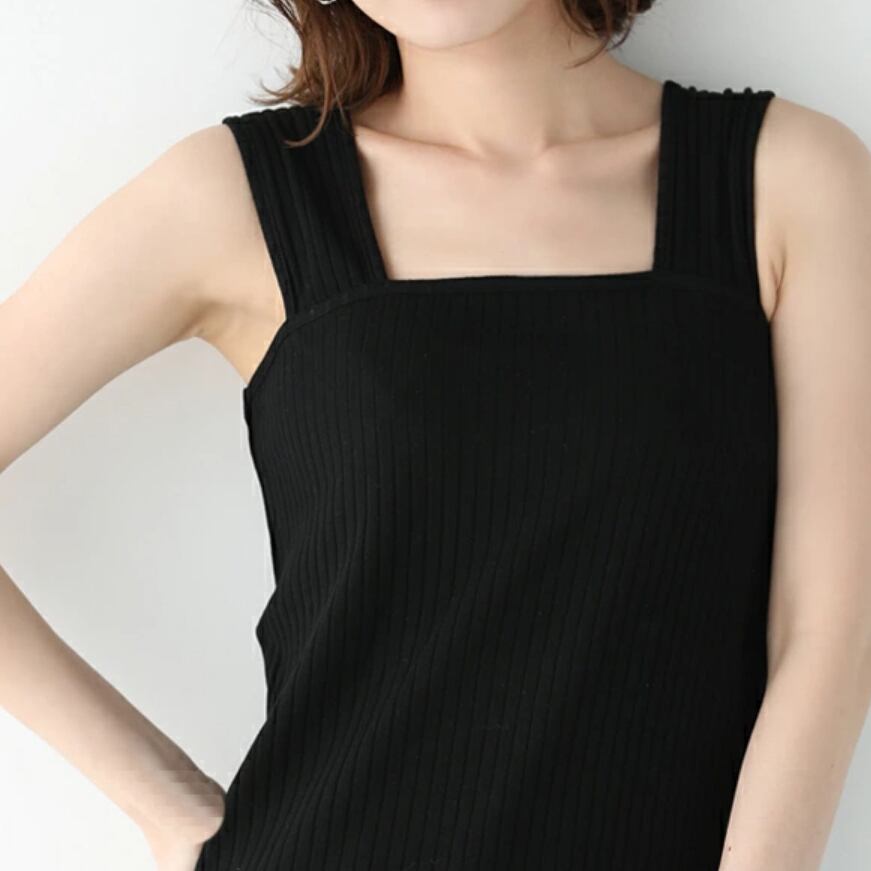 ブラ紐を隠せるリブ素材スクエアネックタンクトップ