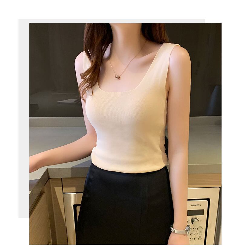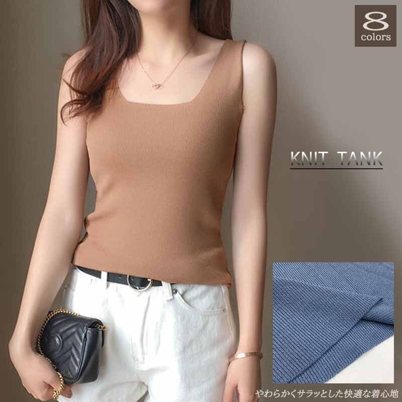 レディース ニット 冷感 タンクトップ ノースリーブ インナー 伸縮性 大人 無地 通勤 スクエア