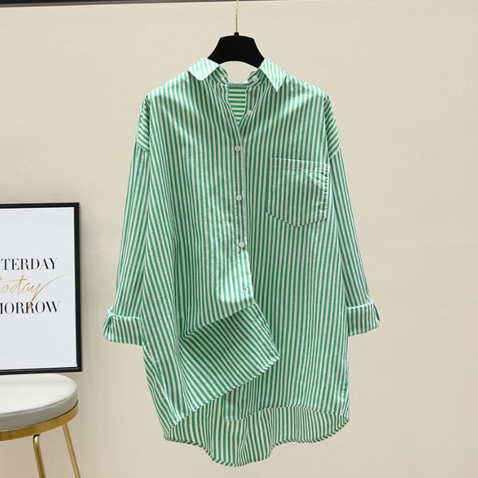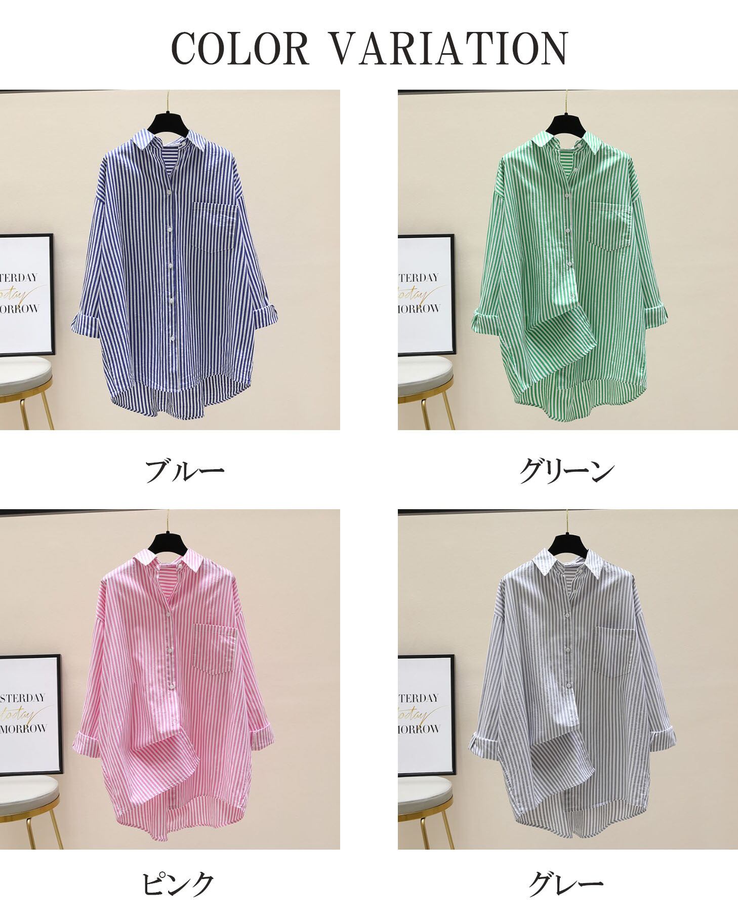 レディース ストライプシャツ さらっと長袖 ロング丈シャツ ブラウス 体型カバー オフィス おしゃれ