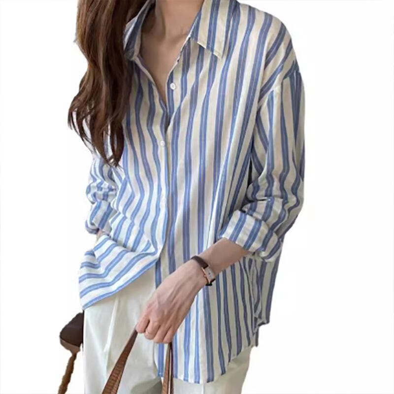 レディース ストライプシャツ さらっと長袖 ロング丈シャツ ブラウス 体型カバー オフィス おしゃれ