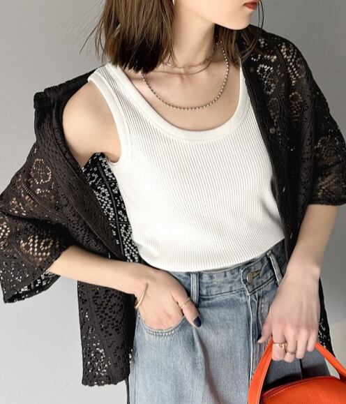 ・キャミソールやタンクトップなどの上に重ねて着るだけでワンランクアップしたコーデに◎。