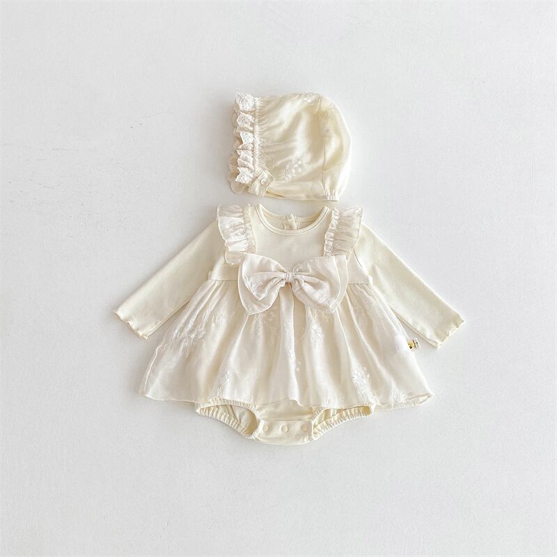 2025秋新作 ベビー服 女の子 帽子付き フェイクレイヤード ロンパース 可愛い おしゃれ 子供服