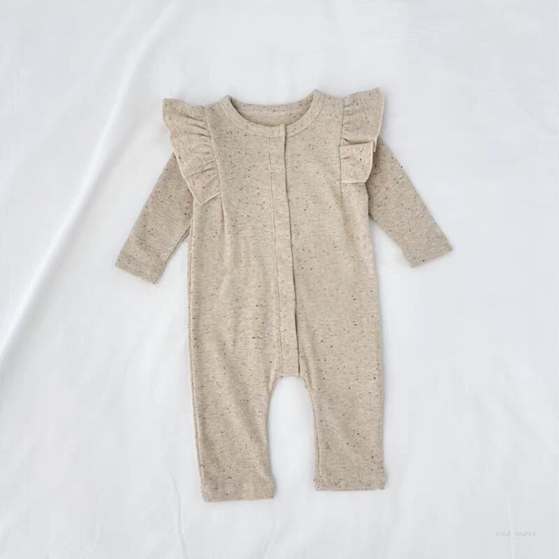 ins 秋新作 ベビー服 肩フリル ロンパース 長袖 子供服 カバーオール 可愛い 新生児 柔らか