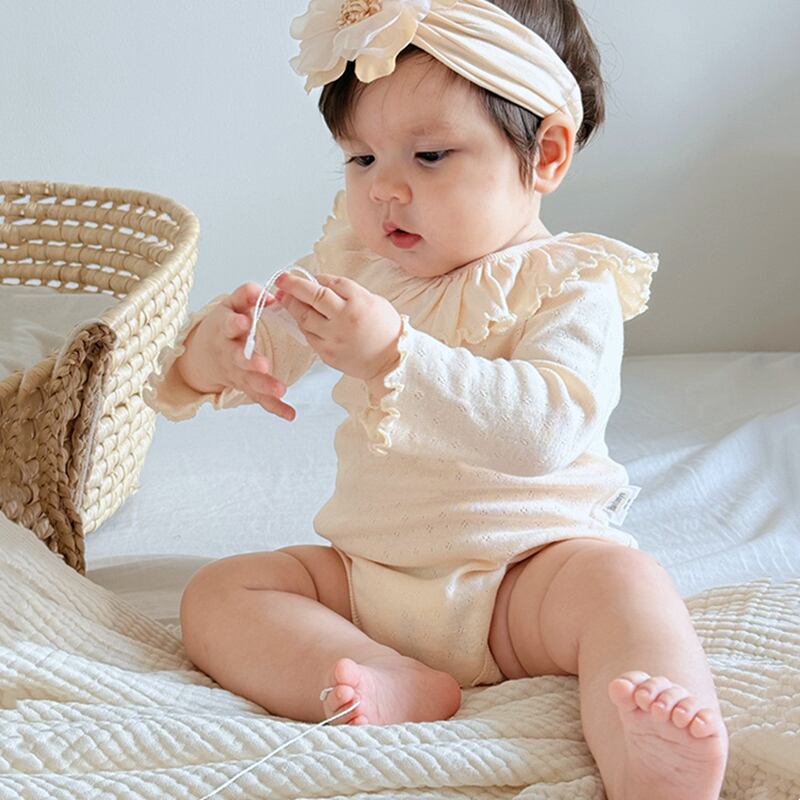 2025秋新作 ベビー服 新生児 フリル 長袖 ロンパース 可愛い 柔らか 無地 3色 部屋着 子供服