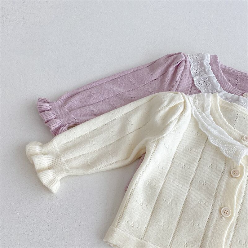 2025秋新作 ベビー服 女の子 レース 長袖 カーディガン 可愛い おしゃれ 子供服 柔らか ニット