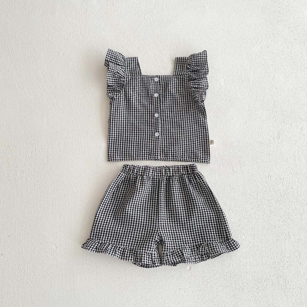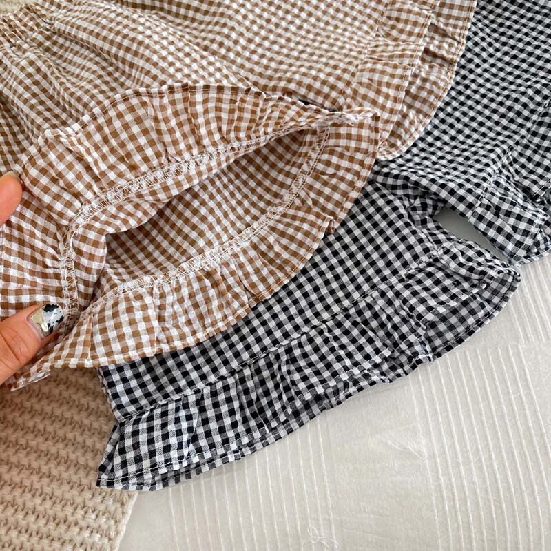 ins 夏新作 子供服 女の子 フリル チェック柄 セットアップ ブラウス ショートパンツ 可愛い