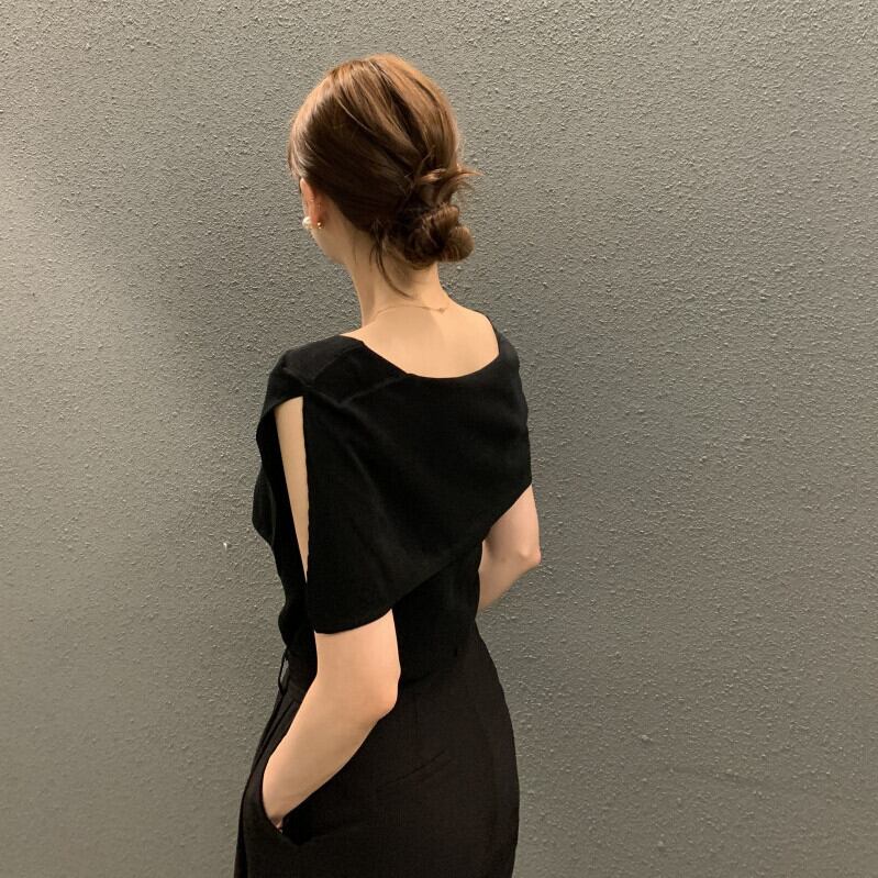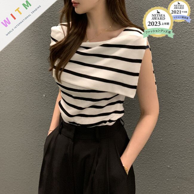 2025新作 ボーダー柄 ニットトップス Tシャツ ノースリーブ ケープ 全4色 レディース オシャレ