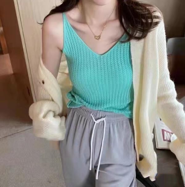 レディース 女 袖なし ニット トップス Tシャツ インナー キャミソール タンクトップ