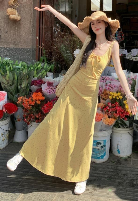 2025春夏新作 女 レディース 袖なし 吊りスカート ロング ワンピース 台型スカート