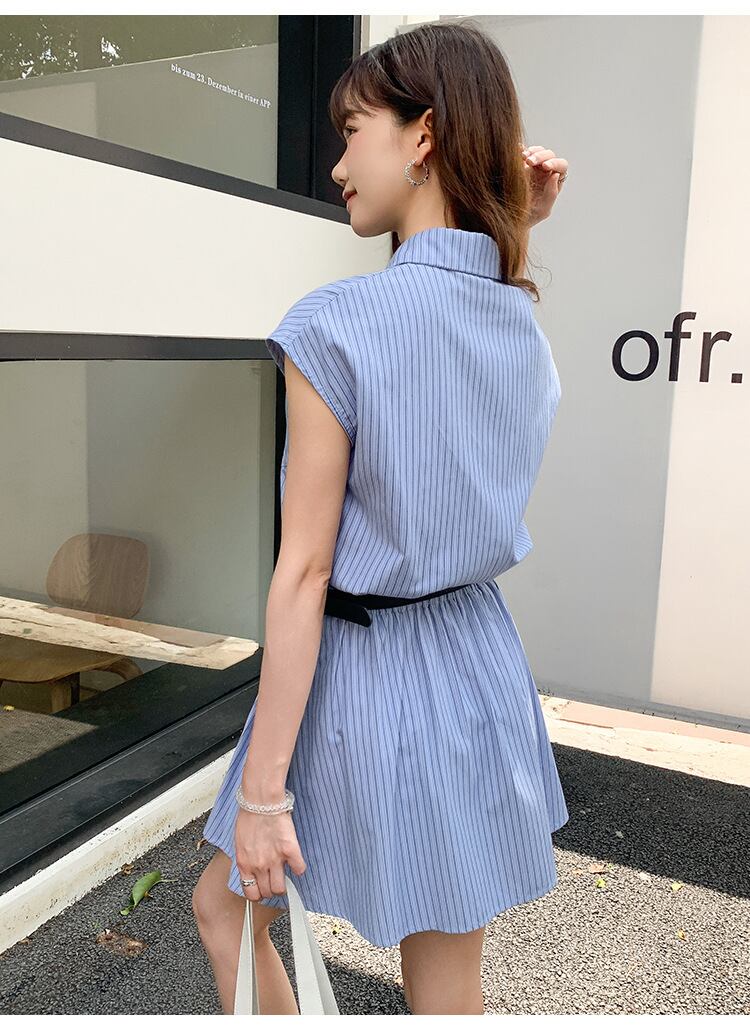 2025春夏新作 女 レディース ハイウエスト ボーダー柄 ミニ ワンピース ドレス 台型スカート