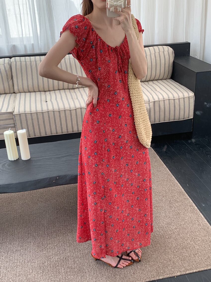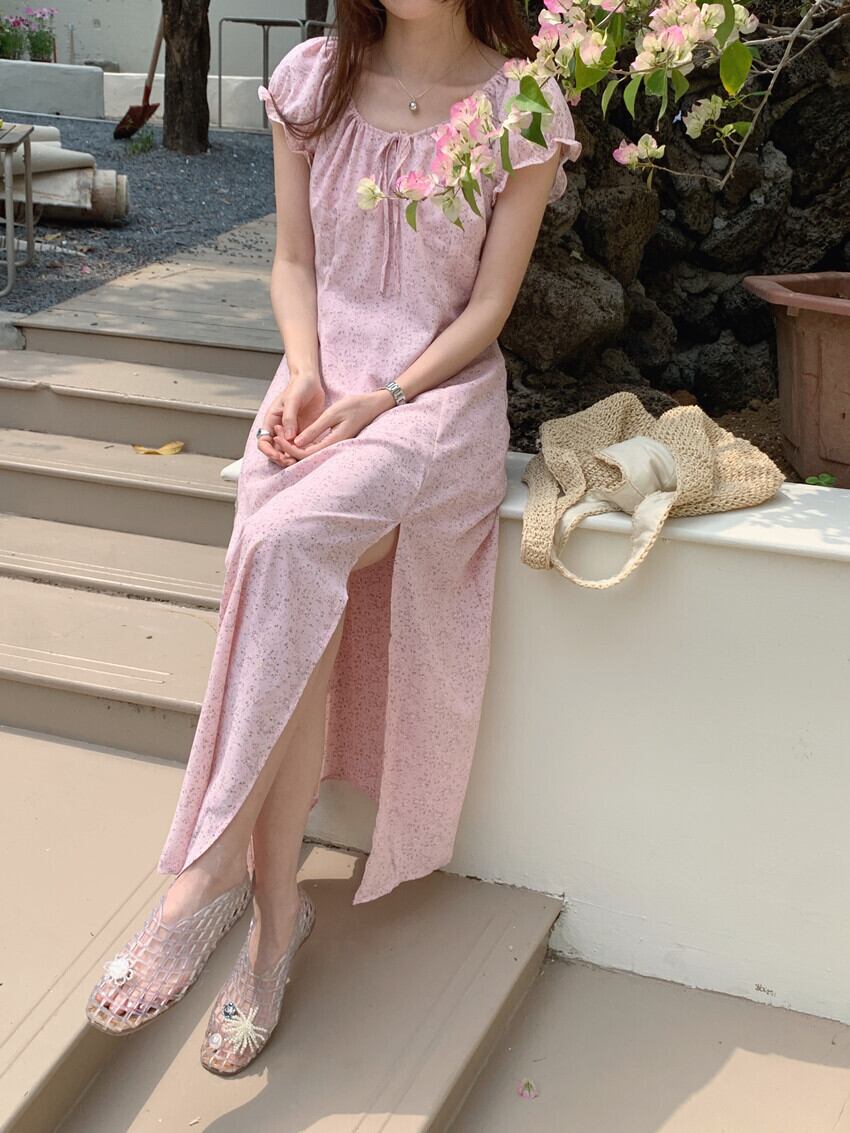 2025春夏新作 女 レディース 半袖 花柄 ロング ワンピース 台型スカート