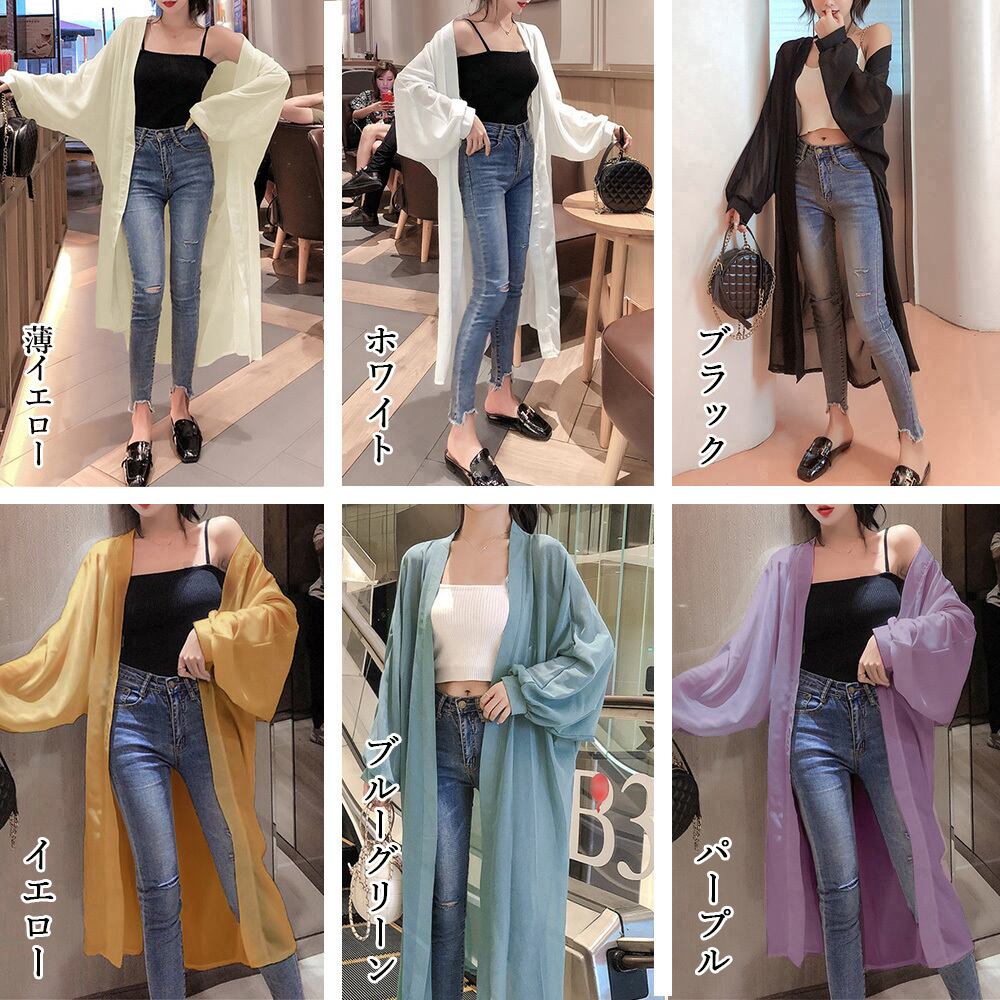 シアーカーディガン夏 ドルマン袖 ロングカーデ 無地 羽織り オフィスカジュアル 長袖 体型カバー トッパーカーデ 薄手