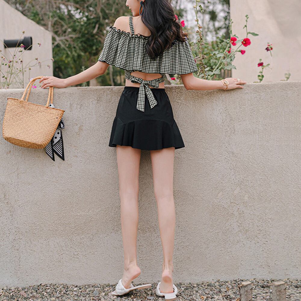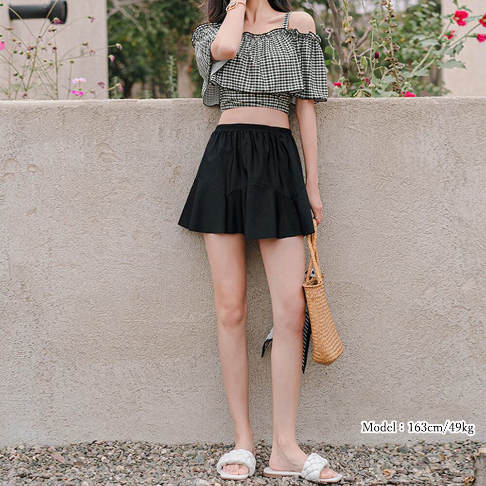 ショートパンツ ギンガムチェックトップス ハイウエストスカート 水着セット 露出控えめ スイムウェア体型カバー おしゃれ