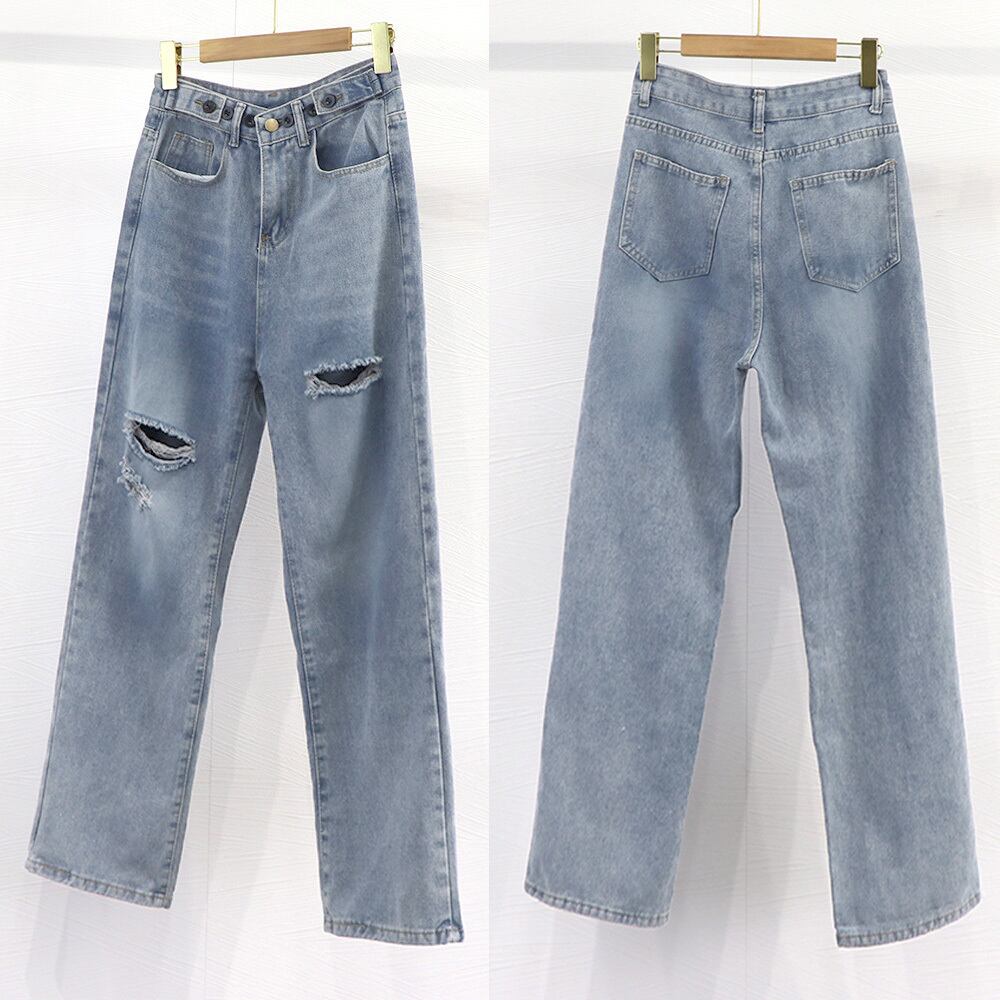 韓国ハイウエスト カジュアル ストレートジーンズ クラッシュデニムパンツ ウォッシュ加工 ストリート ジーパン おしゃれ