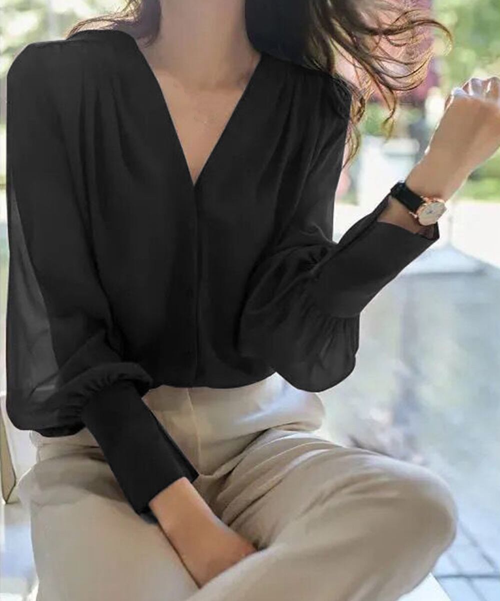 とろみと揺れ感のあるシフォン素材で、大人のフェミニンなブラウス