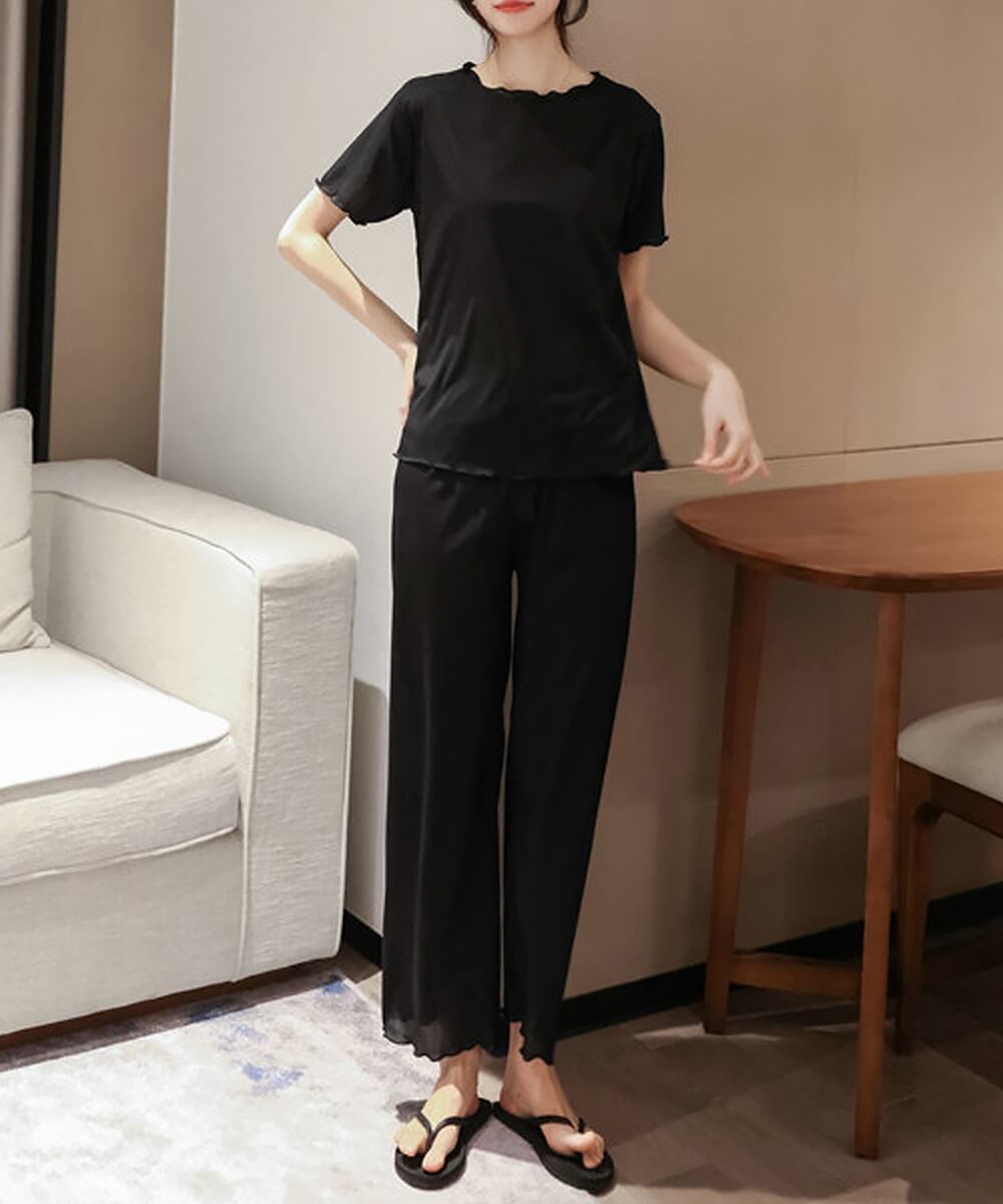 部屋着セットアップ/冷感ホームウェア夏/リラックスウェア黒