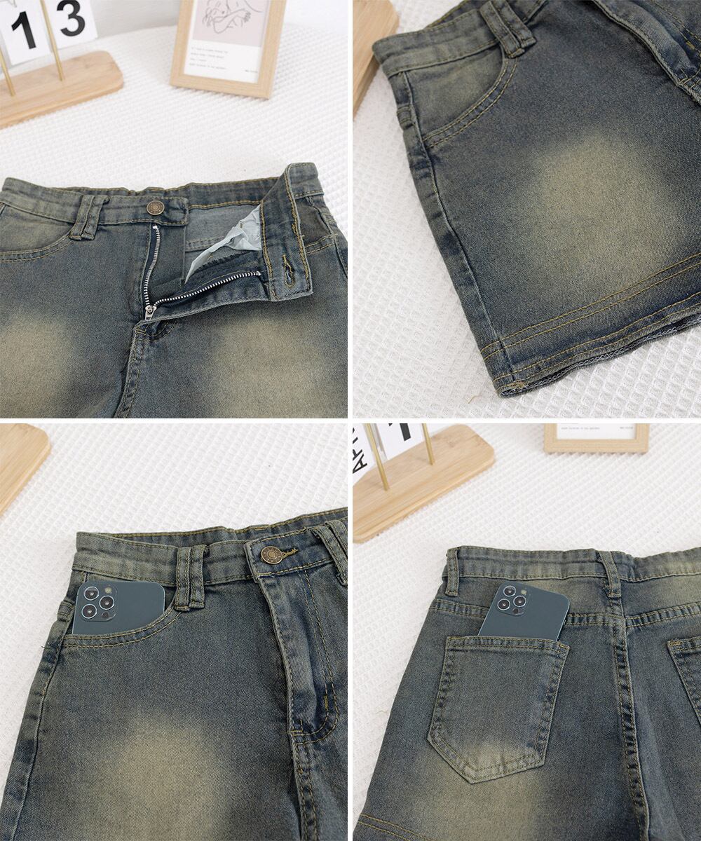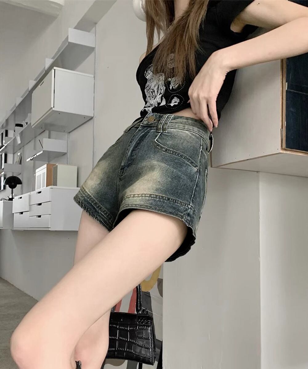 ブリーチデニムショーパン 美脚脚長ジーパン おしゃれ アメカジホットパンツ細見え 美尻ジーンズ レトロ短パン オルチャン