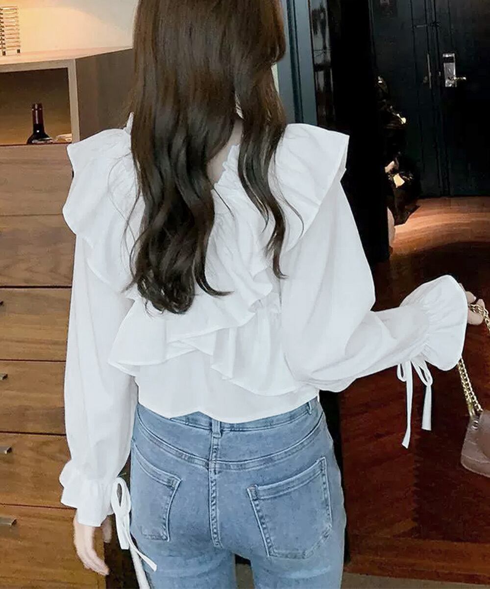 ボリュームのあるフリルが魅力のフェミニンブラウス
