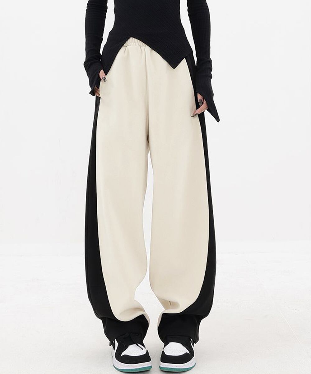 レディース ハイウエストパンツ ウエストゴム パネルラインパンツ ゆったりランニングパンツ カジュアル ダンスパンツ人気
