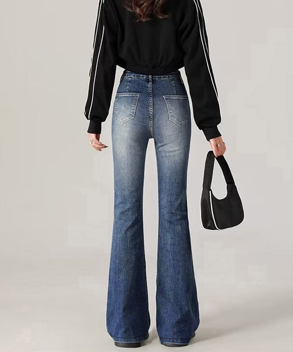 ブーツカットデニム おしゃれ フロントポケットジーパン カジュアルきれいめ 細見え ハイウエストジーンズ美脚脚長 着やせ