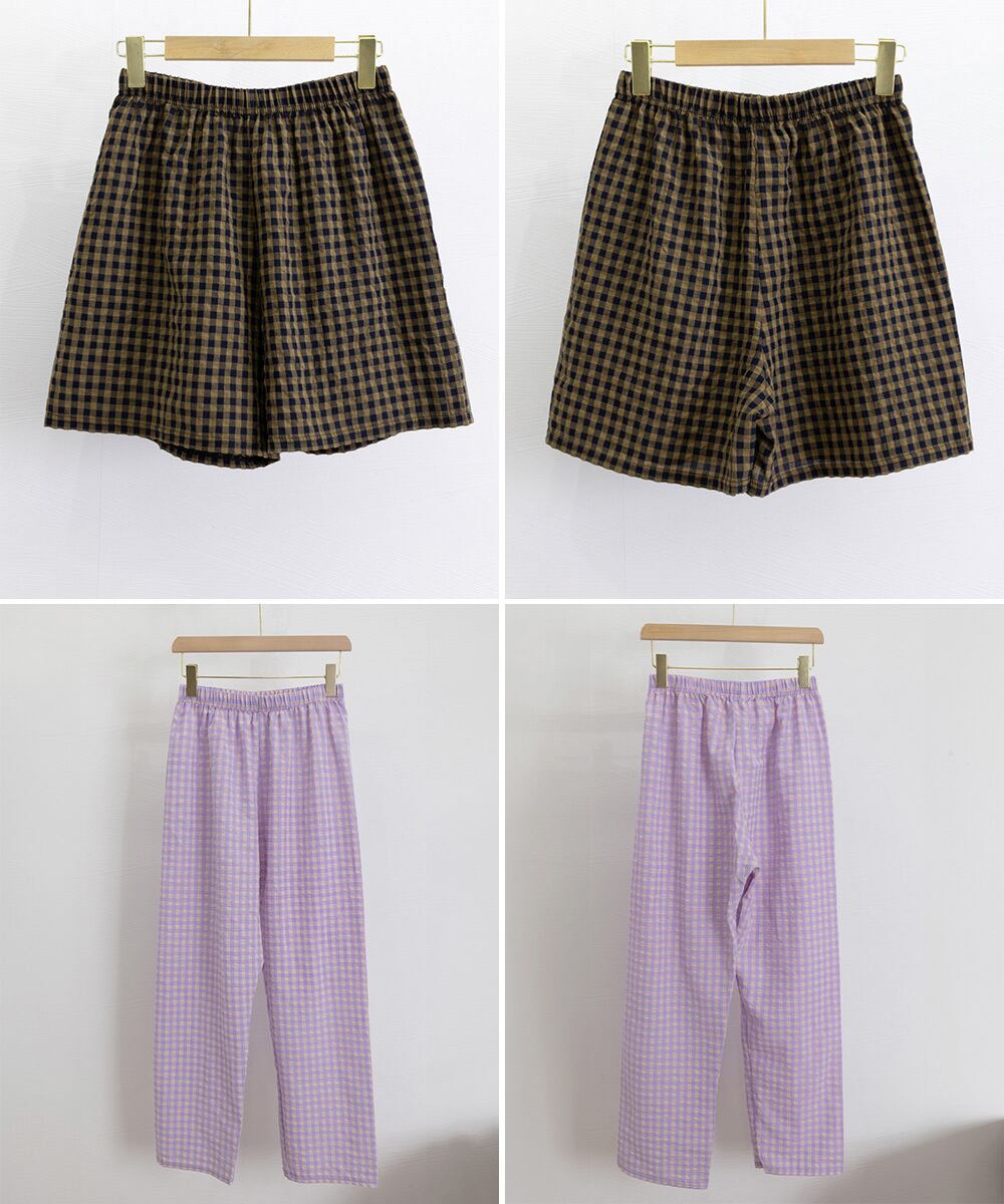 夏にぴったりな軽やかチェック柄パンツ、ショートとロングの2タイプから選べる。