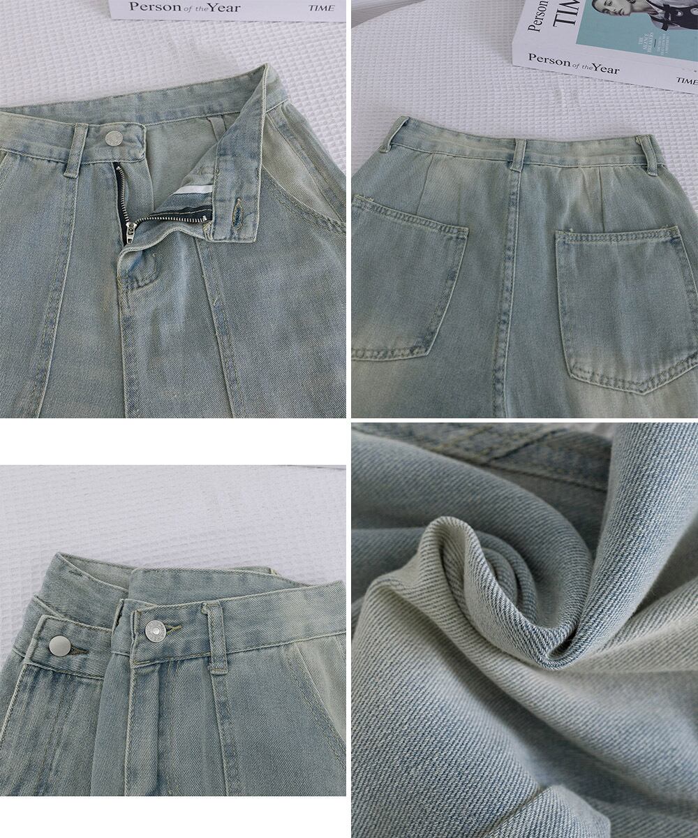 ウォッシュデニムワイドパンツ 着やせ おしゃれ ヴィンテージルーズジーパン カジュアルバギージーンズ ヒップホップパンツ