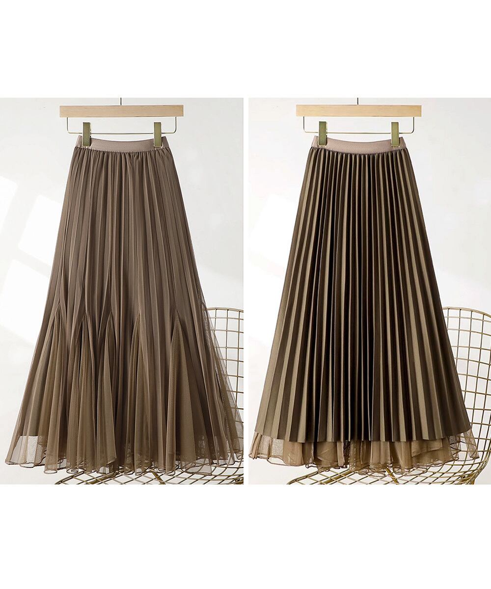 表側は軽やかなチュール、裏側はきれいめなプリーツ仕立て。