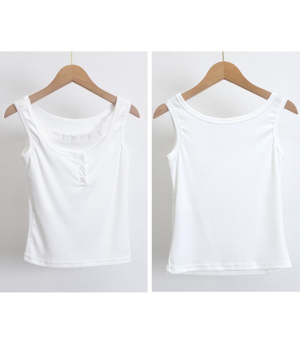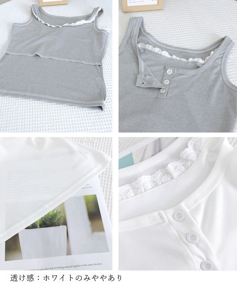 ネックレースタンク/無地サマートップス/お洒落見せインナー
