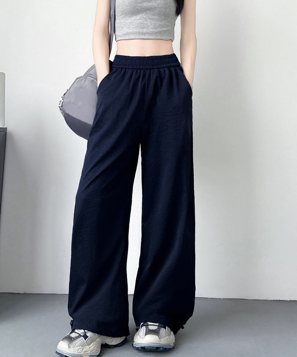 軽やかな穿き心地が魅力の薄手ワイドパンツ。