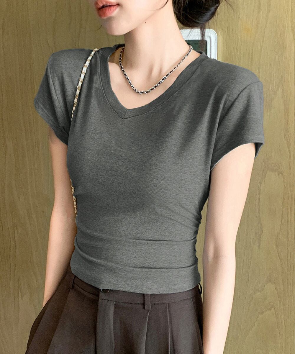 VネックTシャツ春夏 半袖カットソーレディース 着やせtシャツ大人可愛い カジュアルトップス タイトtシャツ細見えお洒落