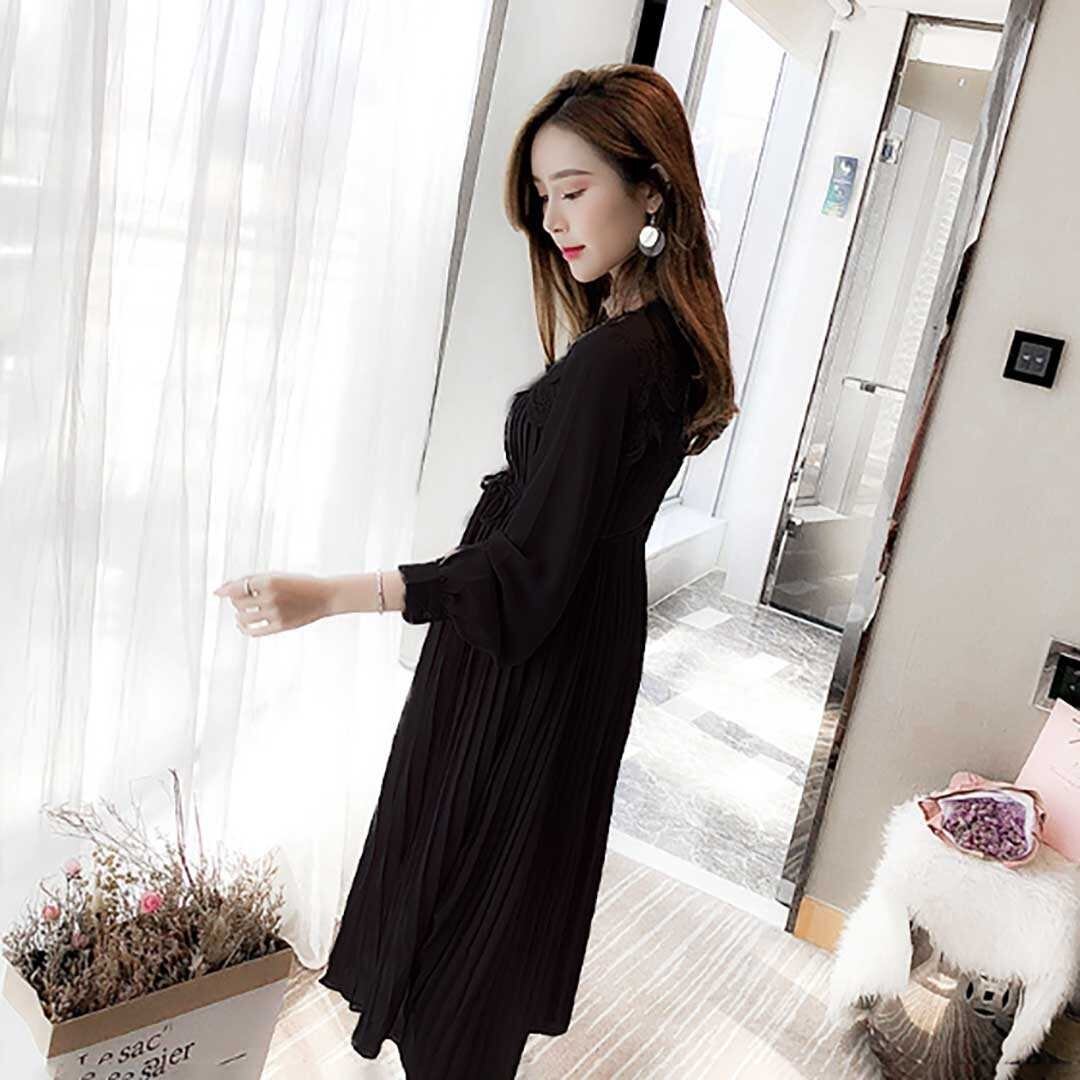 マタニティドレス ブラック Lサイズ プリーツスカート ミモレ丈 大きめ 妊娠ドレス 妊婦ドレス