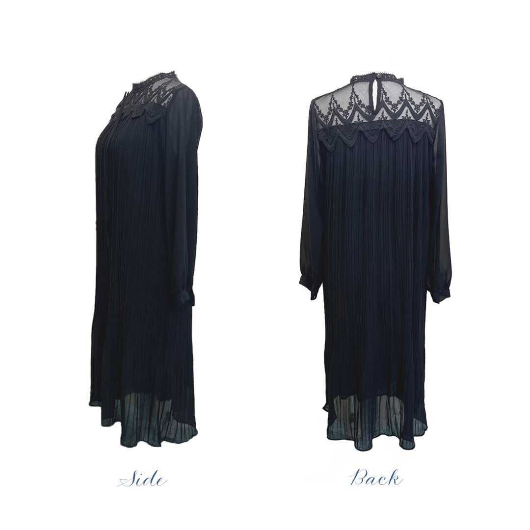スカートにはシフォン素材のプリーツスカートを採用。歩くたびにふわりと揺れて、女性らしいレガントさを醸し出します。